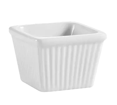 Transform spaces with innovation using the CAC China RKF-SQ2 Ramekin/Sauce Cup. This versatile and stylish porcelain dish is perfect for commercial restaurant use. With a capacity of 2 oz., it is ideal for serving individual portions of sauces, condiments, or desserts. The square shape and fluted design add a touch of elegance to any table setting, while the Super White color complements any decor. Made from durable porcelain, this ramekin is dishwasher, oven, and microwave safe, ensuring easy and convenient use in a busy restaurant kitchen. Elevate your culinary creations and impress your customers with this high-quality and functional ramekin.