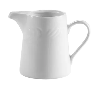 Elevate restaurant standards with the CAC China RSV-PC Creamer/Pitcher. This exquisite porcelain pitcher is designed to enhance the dining experience in commercial restaurants. With its embossed details and elegant Super White finish, it adds a touch of sophistication to any table setting. The 6 oz. capacity is perfect for serving cream or milk, while the convenient handle ensures easy pouring. Made from durable porcelain, this creamer is dishwasher, oven, and microwave safe, making it ideal for busy restaurant kitchens. Trust in the quality and authenticity of CAC China, a renowned vendor in the industry. Upgrade your restaurant's beverage service with this stylish and practical creamer/pitcher.