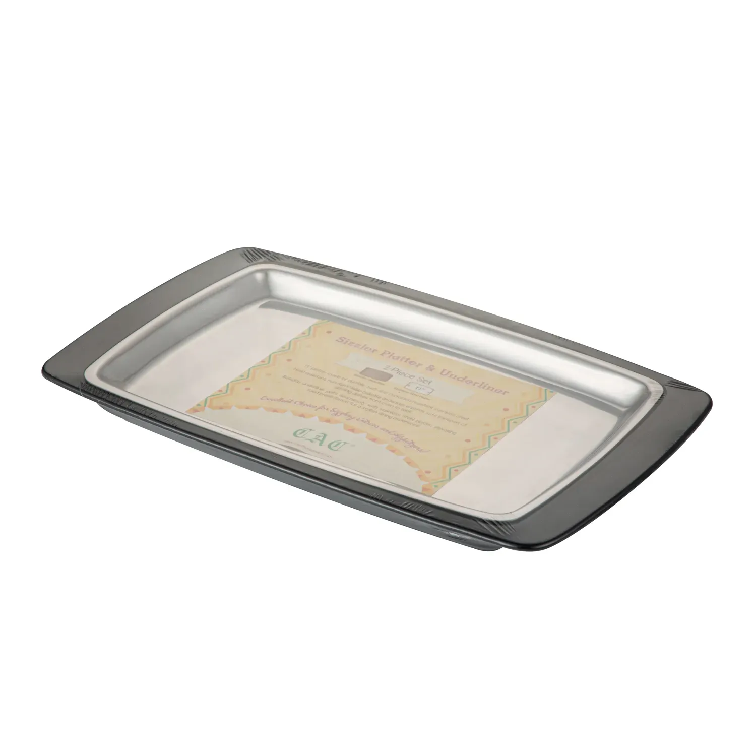 Elevate your dining experience with our exquisite Platter Set, expertly crafted to blend style and functionality. This 2-piece set promises to be the centerpiece of your table, showcasing a sophisticated rectangular design that effortlessly complements any modern or traditional décor. Each platter measures an impressive 11 inches, offering ample space for serving a variety of culinary delights, from artisanal cheeses to gourmet appetizers. Crafted from high-quality stainless steel, these platters ensure durability and resistance to rust, maintaining their pristine appearance even after extensive use. The addition of Bakelite handles not only enhances the aesthetic appeal but also provides a comfortable, heat-resistant grip, making serving a breeze. Perfect for both casual gatherings and formal occasions, this platter set is a versatile addition to any kitchen, promising to impress your guests with its sleek appearance and superior functionality. Whether you're hosting an intimate dinner party or a grand celebration, this set is designed to make a lasting impression, seamlessly blending practicality with elegance. Indulge in the art of presentation and make every meal a special occasion with our stunning platter set, an essential for every culinary enthusiast.