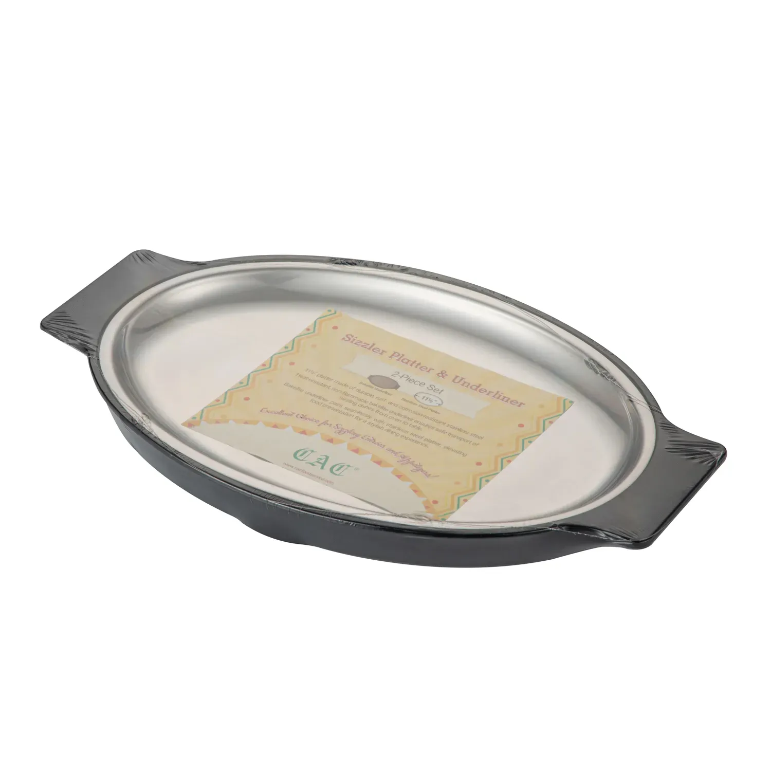 Elevate your dining experience with our exquisite Platter Set, crafted to perfection for both style and functionality. This 2-piece set features elegant oval platters, each measuring 11-1/2 inches, designed to enhance your culinary presentations effortlessly. Made from high-quality stainless steel, these platters offer exceptional durability and a sleek, modern aesthetic that complements any table setting. The addition of Bakelite handles not only ensures heat resistance for safe handling but also adds a touch of sophistication, making them a perfect choice for both casual gatherings and formal occasions. Whether you're serving appetizers, main courses, or delectable desserts, these platters provide the ideal canvas to showcase your culinary creations with flair. Their timeless design and robust construction promise to be a cherished part of your serveware collection for years to come. Perfect for the discerning host or hostess, our Platter Set is more than just serveware; it's an invitation to dine in style and create memorable moments with family and friends. Embrace the art of entertaining with a product that embodies both elegance and practicality, making every meal a celebration.