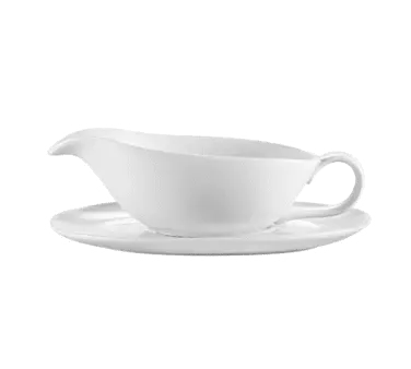 Upgrade your kitchen capabilities with the CAC China SBT-20 Gravy Sauce Boat. This sauce boat and saucer set is perfect for commercial restaurant use, allowing you to serve your delicious sauces with style and precision. The set includes a 20 oz. sauce boat with a handle for easy pouring and a 9-1/4"L x 4-3/4"W x 7/8"H oval saucer for a convenient presentation. Made of durable porcelain, this set is dishwasher, oven, and microwave safe, ensuring easy cleaning and versatility in the kitchen. The Super White color adds a touch of elegance to any table setting. With its high-quality construction and functional design, the CAC China SBT-20 Gravy Sauce Boat is a must-have for any restaurant looking to elevate their sauce service.