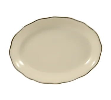 Stay at the culinary forefront with the CAC China SC-40B Platter. Designed by CAC China, a trusted vendor in the restaurant industry, this platter is perfect for commercial restaurant use. With its oval shape and scallop edge, it adds a touch of elegance to any dish. The platter measures 7-1/2"L x 5-3/4"W x 7/8"H, providing ample space for presenting appetizers, entrees, or desserts. Made of durable stoneware (ceramic), it is dishwasher, oven, and microwave safe, ensuring convenience and versatility in a busy kitchen. The black band on the platter's rim adds a stylish touch to the classic American white design. Elevate your restaurant's presentation with the CAC China SC-40B Platter.