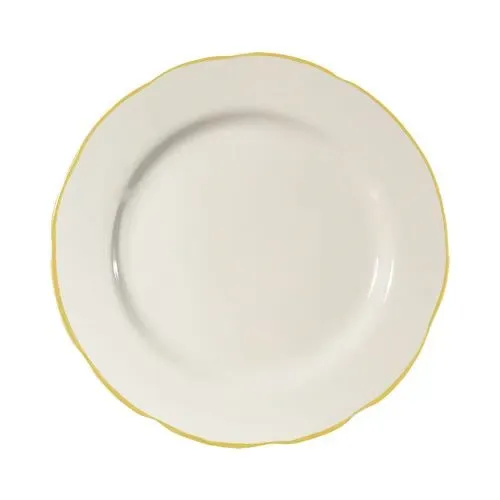 The plate's American white finish, accented with a luxurious gold band, offers a classic yet contemporary aesthetic that complements a wide range of culinary presentations. Whether you're serving appetizers, desserts, or small entrees, the Seville Plate provides a versatile and stylish platform that enhances the visual appeal of your dishes.