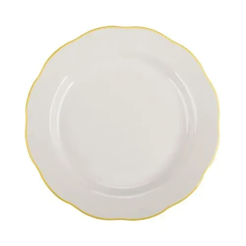 Crafted from durable stoneware ceramic, the Seville Plate is both dishwasher and oven safe, ensuring ease of maintenance and versatility in food presentation. Its American white finish, accented with a luxurious gold band, offers a timeless aesthetic that complements any table setting, enhancing the visual appeal of your culinary creations.