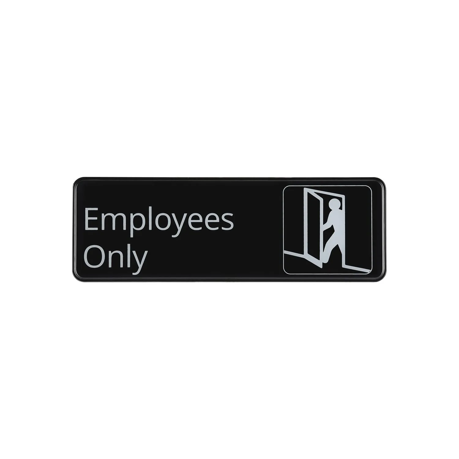 Perfectly sized for everyday dining or special occasions alike, the "Employee Only Compliance Sign" is an essential addition to any restaurant setting. Designed to meet EN compliance standards, this sign ensures that your establishment adheres to necessary regulations while maintaining a professional atmosphere. Measuring 9 x 3 inches, it is compact yet highly visible, making it ideal for placement on doors or walls leading to staff-only areas.