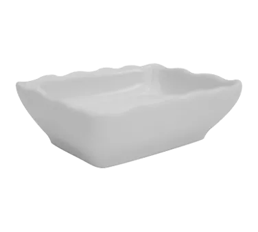 Create a seamless experience with the CAC China SHA-32 Sauce Dish. This rectangular, wavy dish is designed to enhance the presentation of your sauces and condiments, making it perfect for commercial restaurant use. Measuring 3-1/4"L x 2-3/8"W x 1"H, it provides ample space for your culinary creations. Made of durable porcelain, this dish is dishwasher, oven, and microwave safe, ensuring convenience and versatility in a busy kitchen. The Super White color adds a touch of elegance to any table setting, while the high-quality construction guarantees long-lasting performance. Elevate your dining experience and impress your customers with the CAC China SHA-32 Sauce Dish.