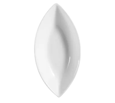 Stay competitive and innovative with the CAC China SHA-V3 China Bowl. This versatile dish is perfect for commercial restaurant use, offering both style and functionality. The oval boat design and sleek Super White porcelain make it an elegant addition to any table setting. With a capacity of 2-1/2 oz., this dish is ideal for serving small appetizers, sides, or even sushi. Its compact size, measuring 5-1/2"L x 2-7/8"W x 1"H, allows for easy plating and efficient use of space. The SHA-V3 China Bowl is not only dishwasher safe but also oven and microwave safe, providing convenience and versatility in a busy restaurant kitchen.