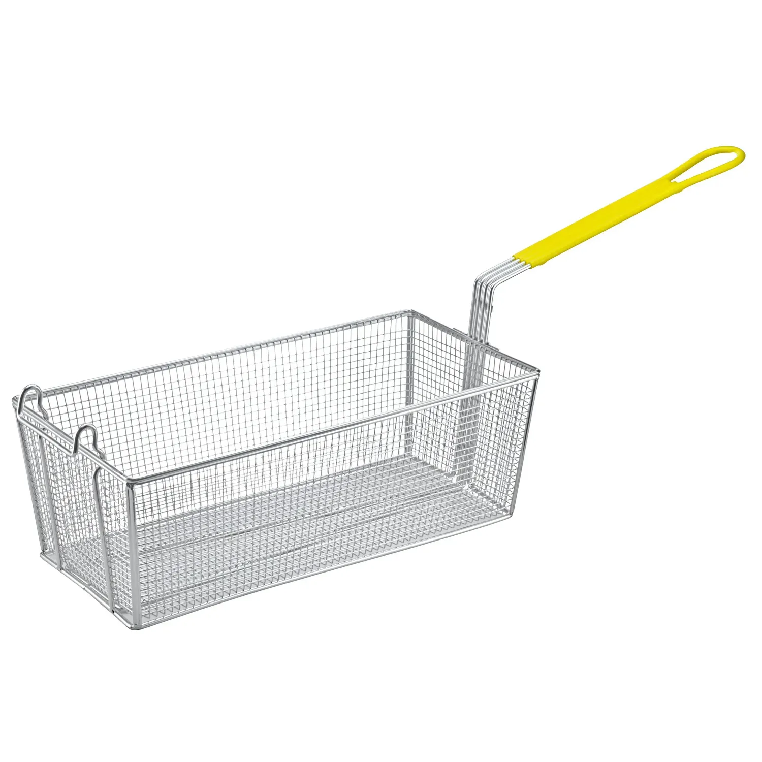 Elevate your culinary adventures with our premium Fry Basket, designed to meet the demands of both professional kitchens and home chefs looking for top-notch performance. Crafted with nickel-plated durability, this basket measures an ideal 17x8-3/8x6 inches, providing ample space for frying all your favorite foods to crispy perfection. The standout feature is its vibrant yellow handle, extending a comfortable 12 inches, ensuring a secure, heat-resistant grip while adding a pop of color to your kitchen tools. Engineered for efficiency, this fry basket fits seamlessly into most fryers, making it an essential addition to your cooking arsenal. With its robust construction, it withstands high temperatures and frequent use, allowing you to fry, drain, and serve with ease. Whether you're preparing golden French fries, crunchy onion rings, or delectable tempura, this fry basket promises consistent results, enhancing the texture and flavor of every dish. Invest in a tool that combines functionality with style, making every frying task not just easy but also enjoyable. Unleash your inner chef and transform your kitchen into a haven for delicious, fried delicacies with our superior Fry Basket.