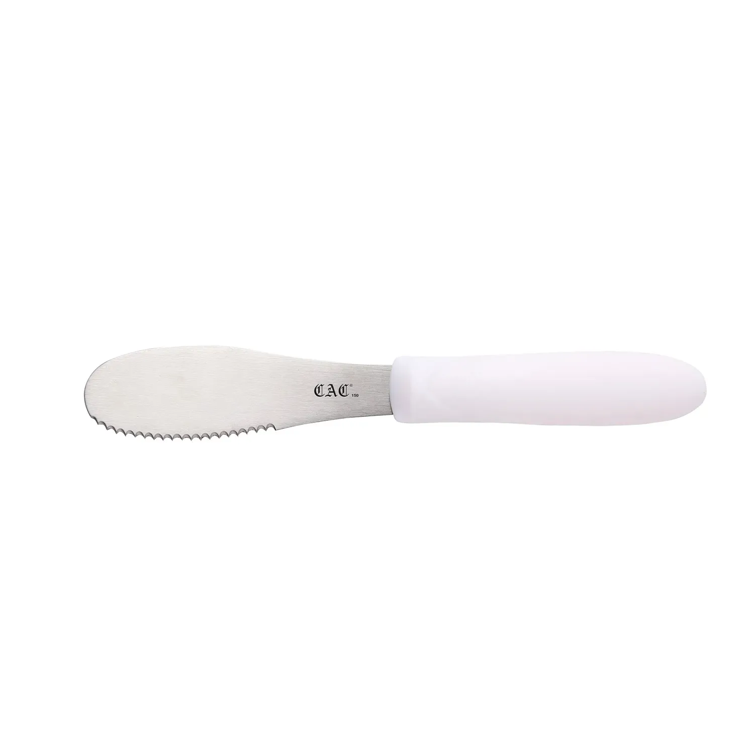 Introducing our meticulously crafted Stainless Steel Serrated Spreader, featuring a sleek 3-7/8" design that combines functionality with modern aesthetics. Perfectly suited for both professional kitchens and home culinary spaces, this spreader is designed to enhance your food preparation experience with precision and ease. The serrated edge effortlessly handles a variety of spreads, ensuring smooth application whether you're dealing with soft butter, creamy cheese, or thick spreads. Its durable stainless steel construction promises longevity and resistance to rust, while the ergonomic white plastic handle provides a comfortable, non-slip grip, even during extended use. This spreader not only ensures optimal performance but also adds a touch of elegance to your dining table. Ideal for both daily use and special occasions, this versatile kitchen tool is a must-have for those who appreciate quality and style in their culinary endeavors. Elevate your kitchen toolkit with this essential spreader and experience the perfect blend of design, durability, and performance that will make every meal preparation a delight.