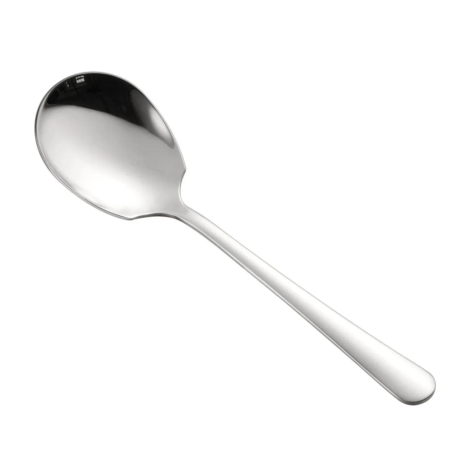 Offers elegance and practicality for foodservice professionals and restaurants, the SSLS-8 Serving Spoon is an essential tool for any dining establishment. Crafted from high-quality stainless steel, this serving spoon combines durability with a sleek, polished finish that complements any table setting. The round edge design of the SSLS-8 ensures a smooth and safe serving experience, making it ideal for a variety of dishes, from hearty stews to delicate desserts.