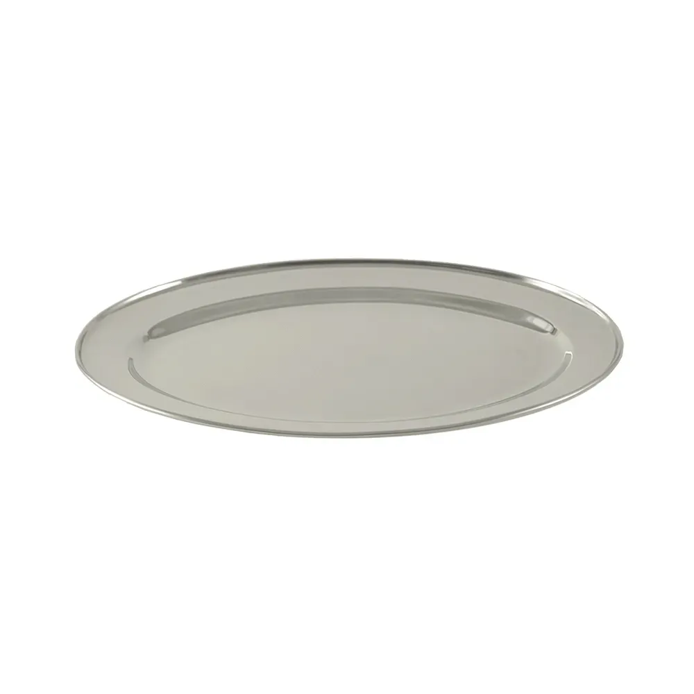 Elevate your dining experience with our exquisite 18-inch Oval Stainless Steel Platter, a perfect blend of elegance and functionality crafted for both everyday use and special occasions. This stunning platter is designed to impress, featuring a sleek, contemporary oval shape that adds a touch of sophistication to any table setting. Made from high-quality stainless steel, it offers exceptional durability and resistance to rust and tarnish, ensuring that it maintains its polished appearance even after years of use. The generous 18-inch size provides ample space for presenting a variety of dishes, from delectable appetizers and vibrant salads to sumptuous main courses and delightful desserts. Whether you're hosting a lavish dinner party or a casual family gathering, this platter is the ideal choice for showcasing your culinary creations with style. Its timeless design complements both modern and traditional decor, making it a versatile addition to your serveware collection. Easy to clean and maintain, our Oval Stainless Steel Platter promises to be a reliable and elegant companion for all your dining occasions, enhancing the presentation of your food while adding a touch of luxury to your table.