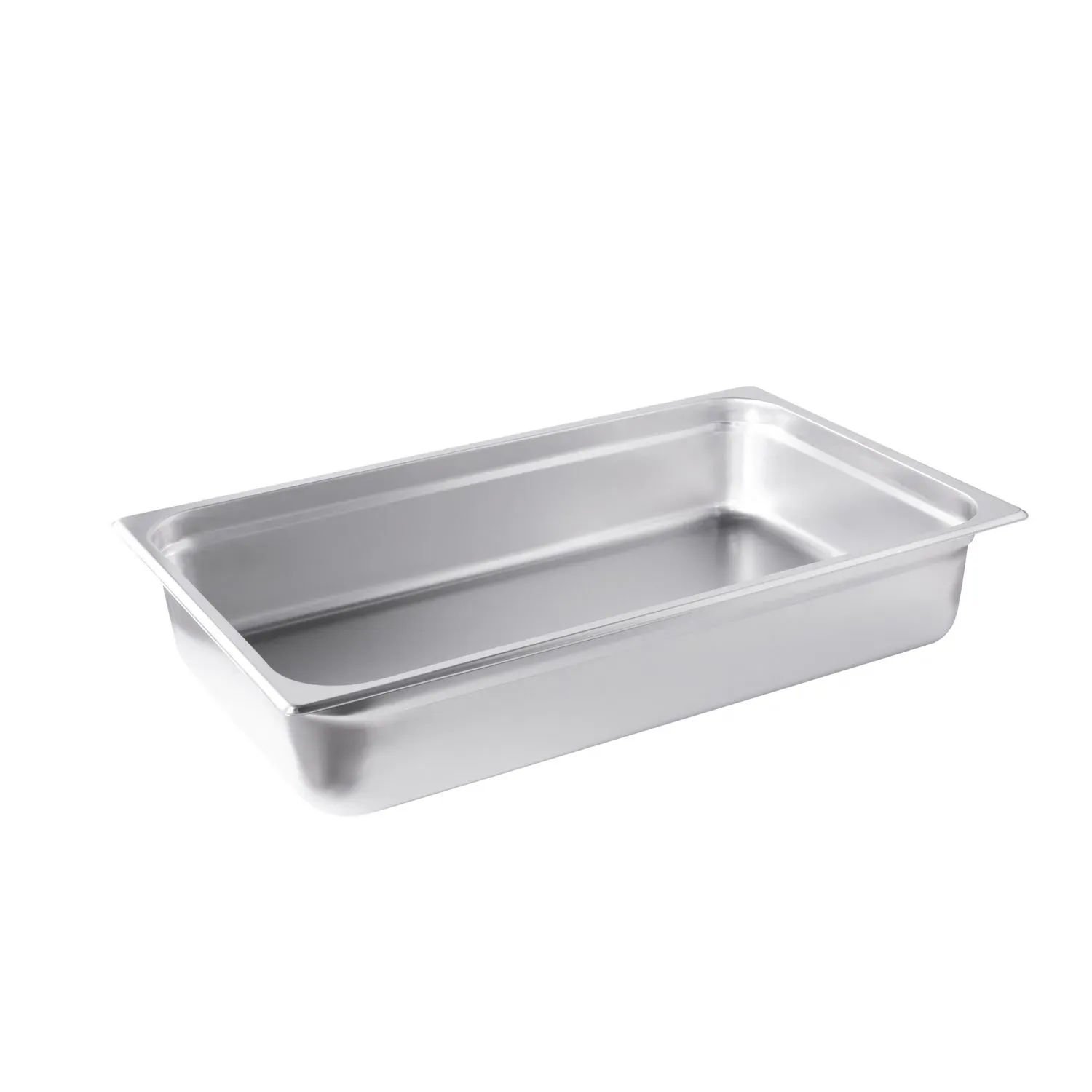 The Steam Pan SS 1/1 features a 4-inch depth, providing ample space for a variety of dishes, from savory entrees to delectable desserts. Its full-size 1/1 design ensures compatibility with standard steam tables and buffet setups, allowing for seamless integration into your existing kitchen equipment. The ati.jm finish not only enhances its aesthetic appeal but also ensures easy cleaning and maintenance, saving valuable time in a fast-paced restaurant setting.