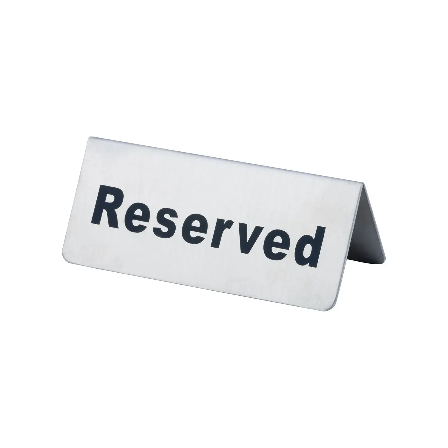 Beautifully crafted for serving salads, pastas, and other dishes, the Sign Table Tent SS "Reserved" is an essential addition to any restaurant setting. This elegantly designed table tent, known as the STRV-52, ensures that your guests are greeted with a touch of sophistication and clarity. Made from high-quality stainless steel, the "Reserved" sign is both durable and stylish, seamlessly blending with any restaurant decor.