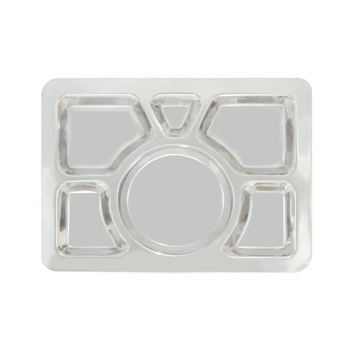 Elevate your dining experience with our exquisite stainless steel serving tray, masterfully designed to combine functionality and elegance. This tray features six meticulously crafted compartments, offering a perfect blend of versatility and style, ideal for both casual family meals and sophisticated dinner parties. The unique round center compartment serves as a focal point for dips, sauces, or decorative garnishes, making it a must-have centerpiece for any occasion. Crafted from high-quality stainless steel, this serving tray promises durability and a brilliant shine that will withstand the test of time while remaining easy to clean and maintain. Its sleek, polished finish adds a touch of modern sophistication to any table setting, while the sturdy design ensures stability and ease of handling. Whether you're serving appetizers, desserts, or a variety of side dishes, this compartmentalized tray ensures each element is presented beautifully, enhancing the culinary experience for your guests. Perfect for caterers, restaurateurs, or home entertainers looking to impress, this serving tray is an essential addition to your kitchen arsenal. Make every gathering memorable with this versatile and stylish serving solution that seamlessly blends practicality with aesthetic appeal.