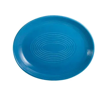 Introducing the CAC China TG-14C-PCK Platter, China. Ensure precision in cooking with this versatile and stylish platter from CAC China. Designed for commercial restaurant use, this oval coupe platter is perfect for serving a variety of dishes. With dimensions of 12-3/4"L x 10-1/4"W x 1-1/2"H, it provides ample space for presenting your culinary creations. Made from durable porcelain, this platter is dishwasher, oven, and microwave safe, making it convenient for busy restaurant kitchens. The embossed design adds a touch of elegance to any table setting, while the vibrant Peacock color adds a pop of color to your presentation. Elevate your restaurant's dining experience with the CAC China TG-14C-PCK Platter, China.