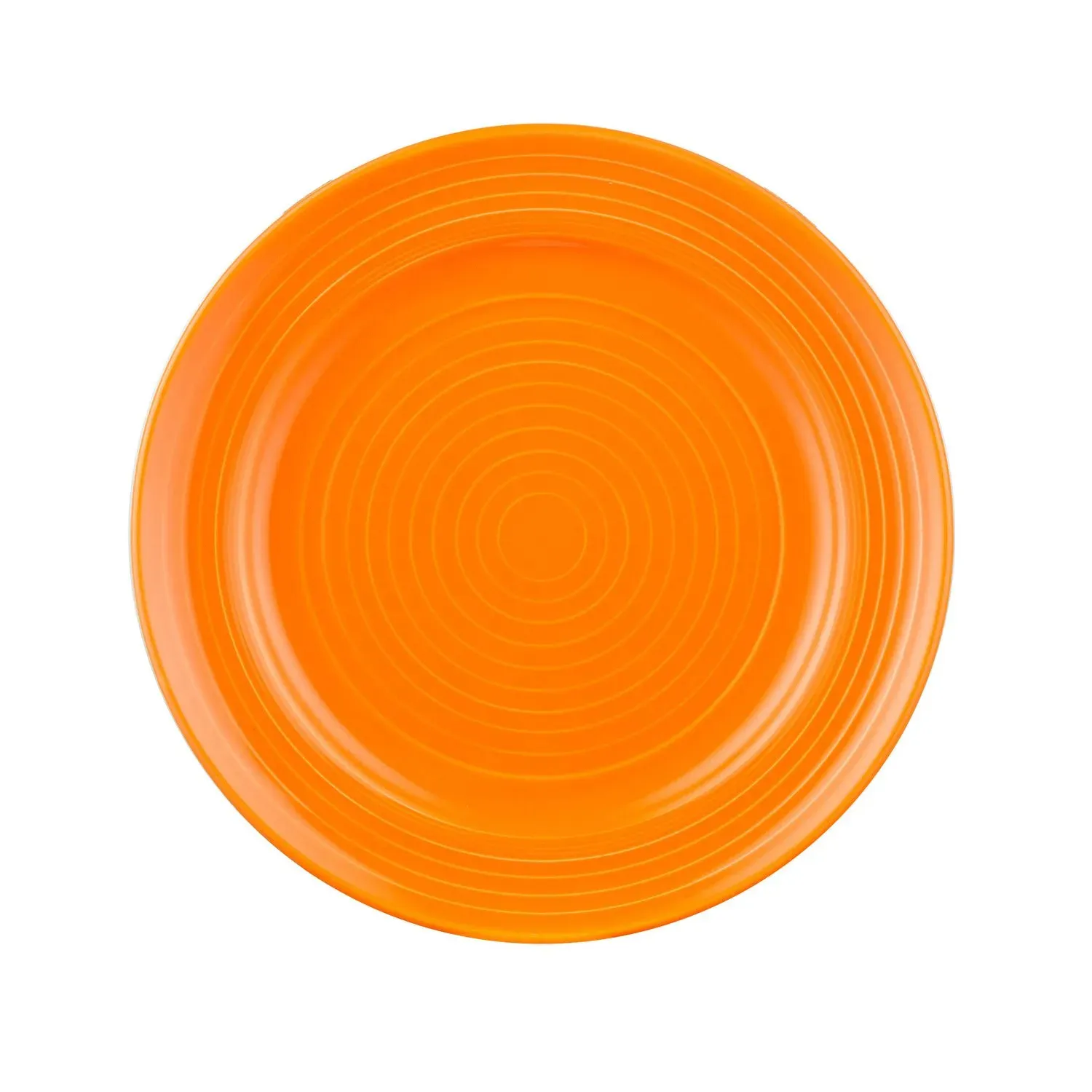 Provides an elegant way to serve small portions and desserts, the Tango Plate is a must-have for any restaurant looking to elevate its dining presentation. With a generous 12-inch diameter and a height of 1-5/8 inches, this round, embossed porcelain plate offers ample space for creative plating while maintaining a refined aesthetic. Its vibrant tangerine hue adds a pop of color to your table settings, making it perfect for showcasing your culinary creations.