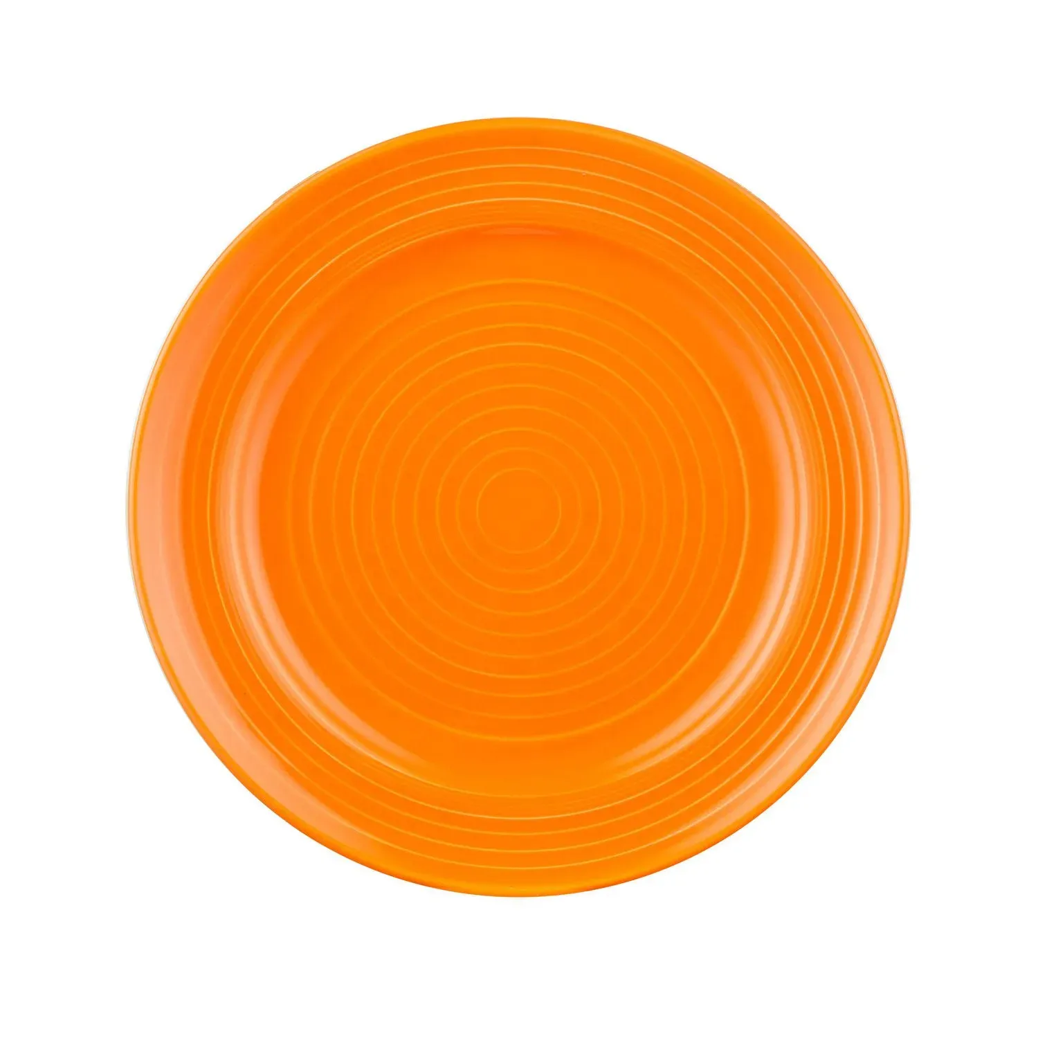Ideal for restaurants, buffets, or catering services seeking elegance, the Tango Plate is a perfect blend of style and functionality. With a diameter of 7-1/2 inches and a height of 1 inch, this round, embossed porcelain plate is designed to enhance the presentation of any dish. Its vibrant tangerine color adds a pop of sophistication to your table setting, making it an eye-catching choice for any dining experience.
