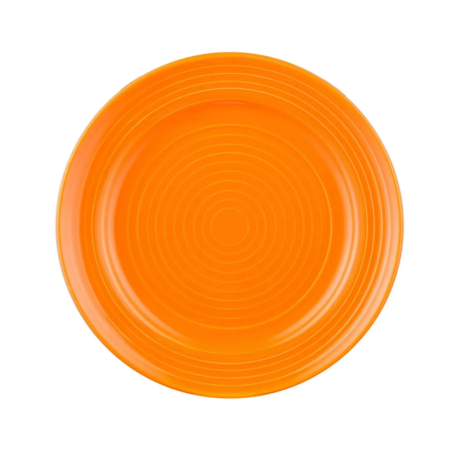 Adds a touch of elegance to any dining experience, the Tango Plate is the perfect addition to your restaurant's tableware collection. With its 9-inch diameter and 1-1/8 inch height, this round, embossed porcelain plate offers both style and functionality. The vibrant tangerine color adds a pop of color to your table settings, enhancing the visual appeal of your culinary creations.