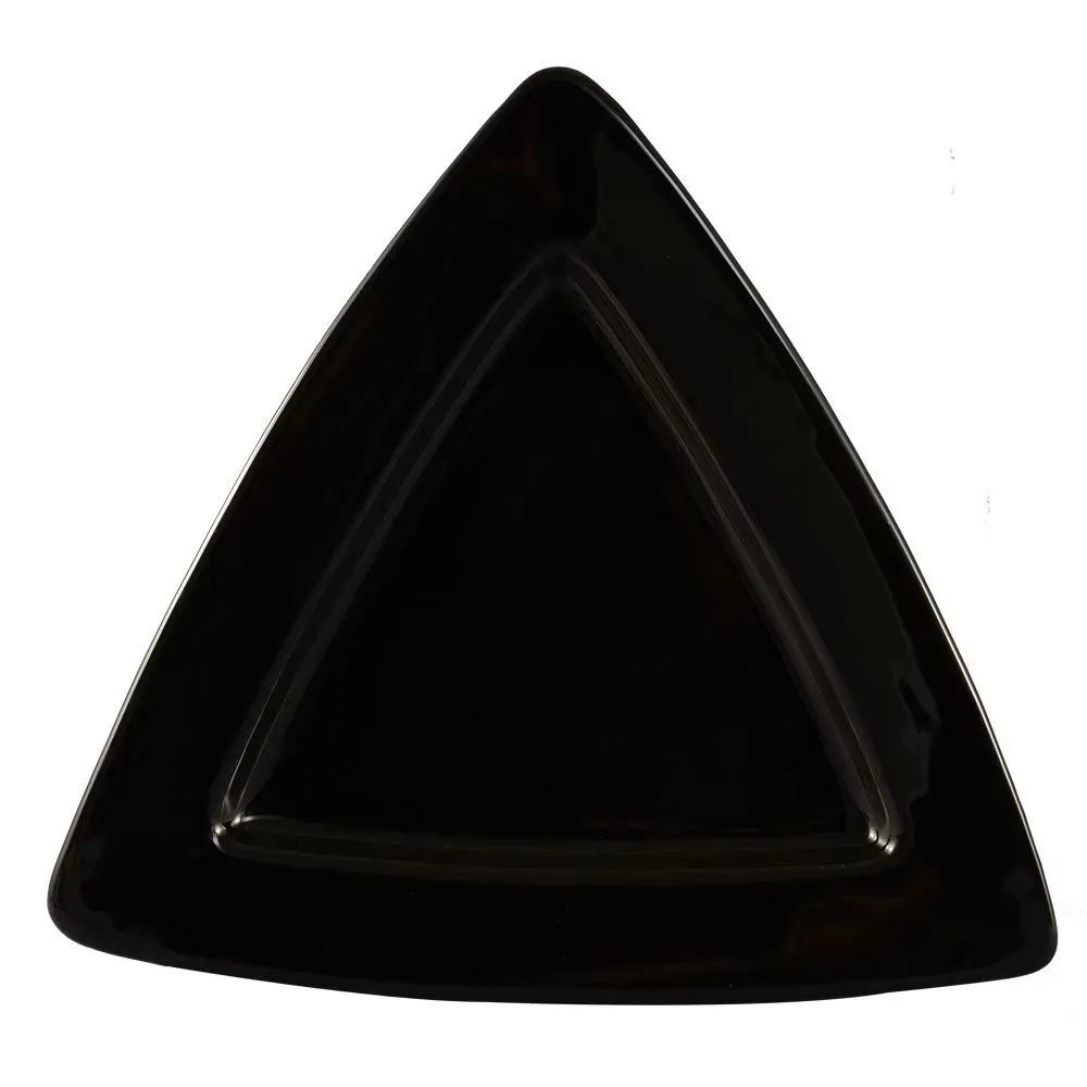 Enhance your tabletop presentations with a touch of sophistication using the Festiware Triangular Plate. Designed with a unique triangular shape, this 11-1/2" x 11-1/2" x 1" deep plate offers a modern twist to traditional dining aesthetics, making it an ideal choice for upscale restaurant settings. Crafted from durable stoneware ceramic, the Festiware Plate is not only visually striking in its sleek black finish but also highly functional.