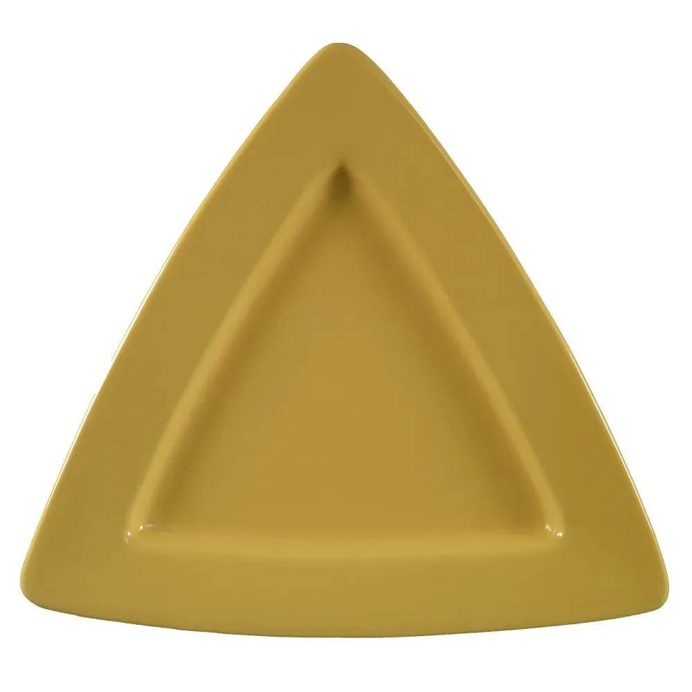 Perfectly sized for everyday dining or special occasions alike, the Festiware Triangular Plate is a versatile addition to any restaurant's tableware collection. Measuring 11-1/2 inches on each side with a 1-inch depth, this uniquely shaped plate offers ample space for creative plating, making it ideal for showcasing your culinary masterpieces. Crafted from durable stoneware ceramic, the Festiware Plate is designed to withstand the rigors of a busy kitchen environment.