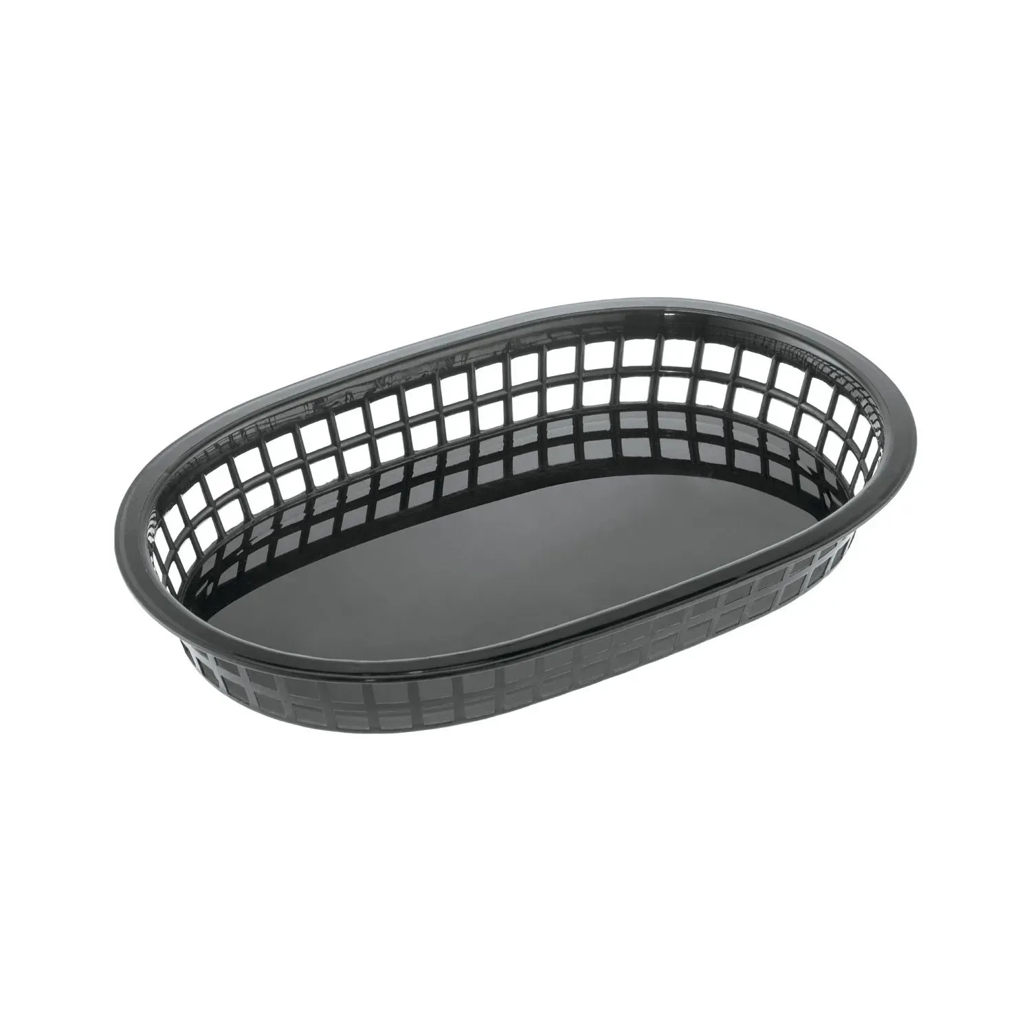 Crafted from high-quality polypropylene, the Fast Food Basket is both lightweight and sturdy, making it ideal for fast-paced environments. Its oblong shape, measuring 10-7/8 inches in length, offers ample space for serving a variety of dishes, from burgers and fries to sandwiches and sides. The elegant black color adds a touch of sophistication, seamlessly blending with any table setting or decor theme.