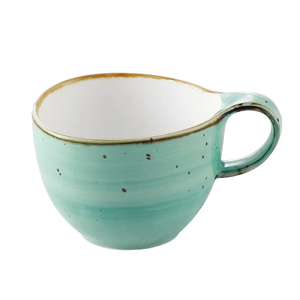 Experience the difference with CAC China's TUS-1-TQS Cups. Designed for commercial restaurant use, these cups are a perfect addition to any dining establishment. With a capacity of 8-1/2 oz., these Tucson Cups are ideal for serving hot beverages like coffee, tea, or hot chocolate. Made from durable porcelain, these cups are dishwasher, oven, and microwave safe, ensuring easy cleaning and versatility in the kitchen. The round shape and handle make them comfortable to hold, while the reactive glaze adds a touch of elegance to any table setting. The Turquoise color of these cups adds a pop of color to your restaurant's decor. Pair them with the matching saucer (TUS-2-TQS) for a complete and coordinated look. Trust CAC China for high-quality, reliable cups that will enhance the dining experience for your customers.