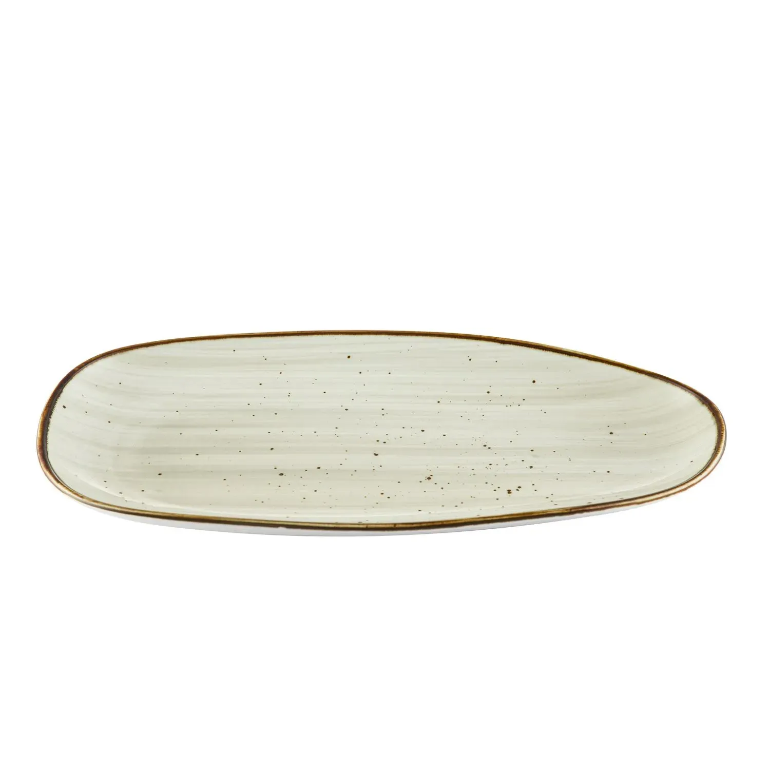 Ideal for serving beverages in a sleek, professional manner, the Tucson Platter is a versatile addition to any restaurant's tabletop presentation. Measuring 13" x 6-1/2" and featuring an elegant oval shape, this platter is perfect for showcasing a variety of culinary creations, from appetizers to desserts. Crafted from high-quality porcelain, the Tucson Platter is designed to withstand the rigors of a busy restaurant environment. Its reactive glaze in a sophisticated desert beige adds a touch of rustic charm, enhancing the visual appeal of your dishes.