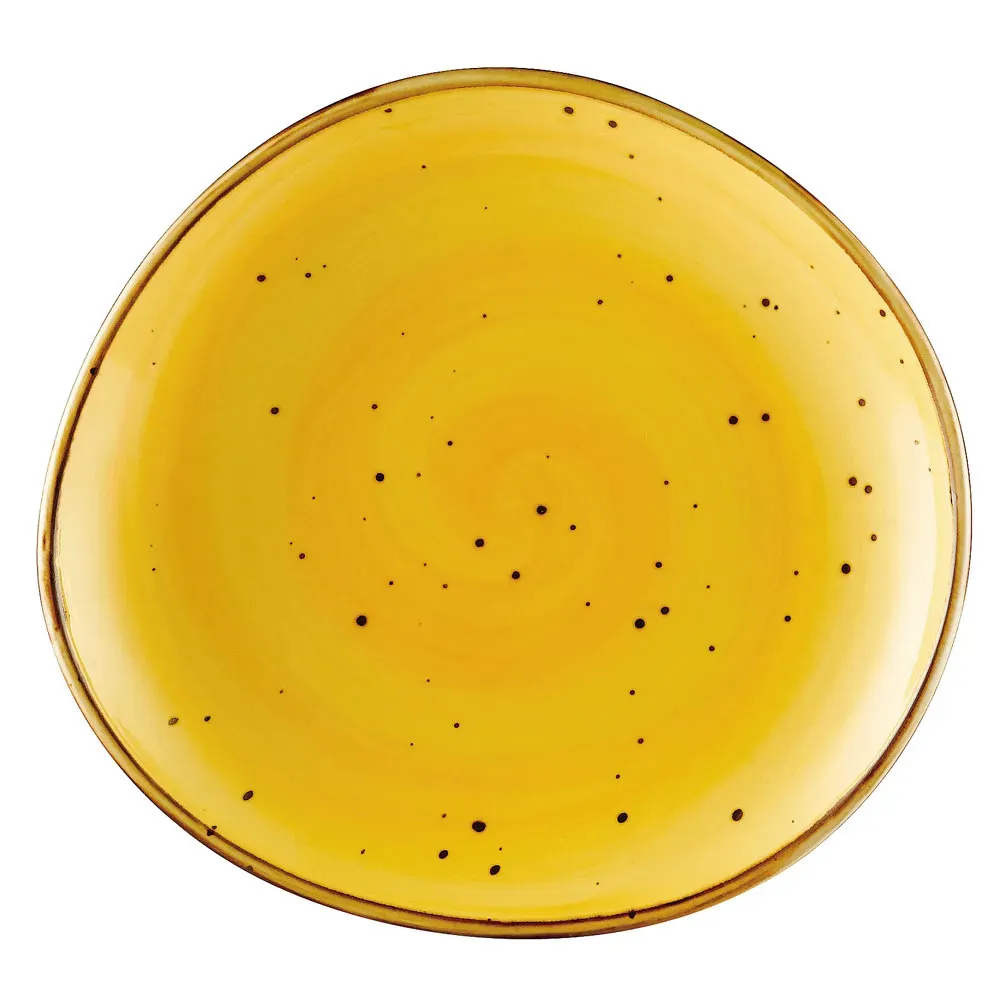 Transform spaces with innovation using the CAC China TUS-8-SFL Plate. This irregular round plate is designed to add a touch of uniqueness to any commercial restaurant setting. Made with high-quality porcelain and finished with a reactive glaze in a vibrant Sunflower color, this plate is not only visually appealing but also durable and long-lasting. It is dishwasher, oven, and microwave safe, making it convenient for busy restaurant kitchens. With a size of 8-1/4" x 7-3/4", this plate is perfect for serving a variety of dishes, from appetizers to main courses. Elevate your dining experience and impress your customers with the CAC China TUS-8-SFL Plate.