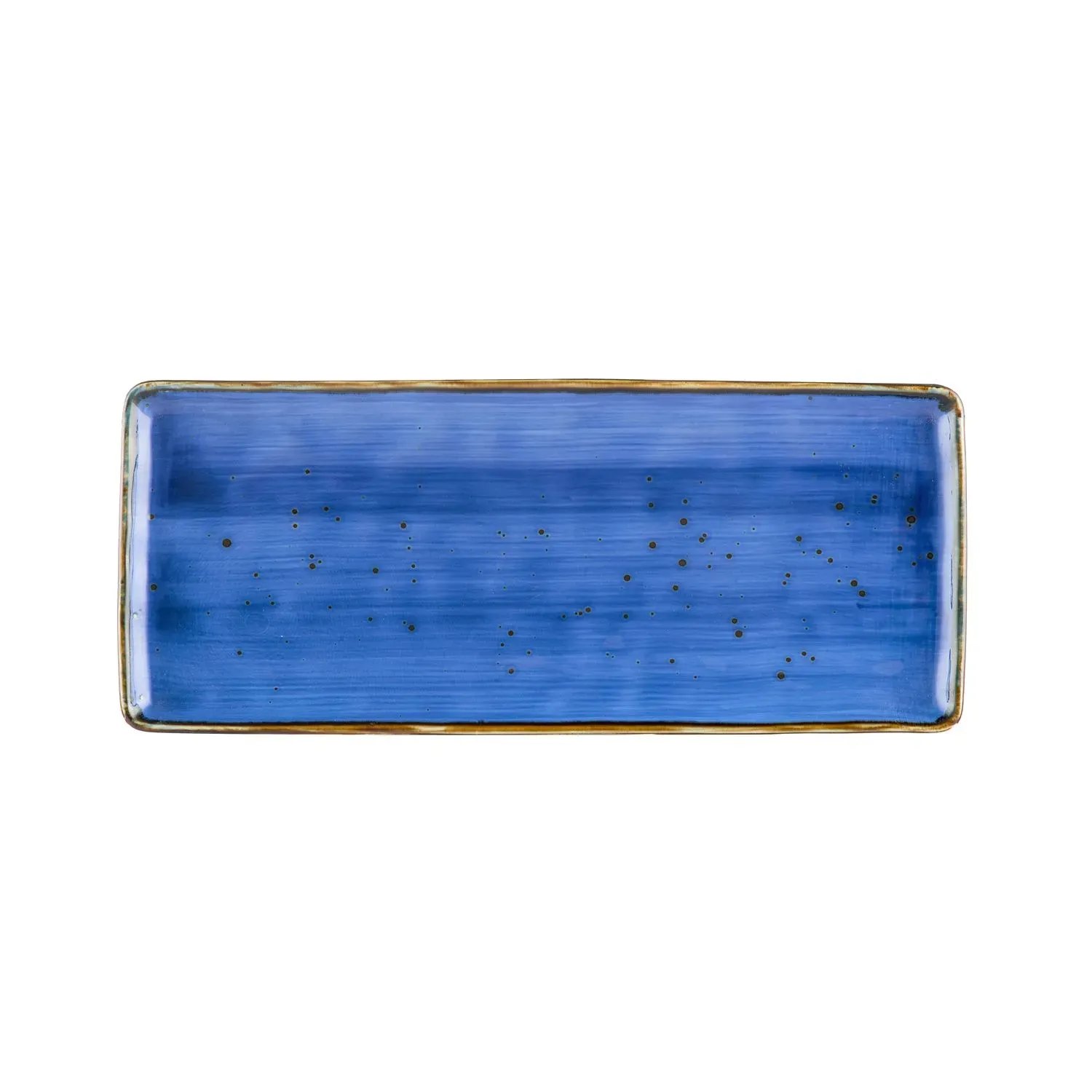 A great solution for serving both hot and cold foods, the Tucson Platter in Starry Night Blue is an exquisite addition to any restaurant's tableware collection. Measuring 14 inches in length, 6 inches in width, and 1/2 inch in height, this rectangular platter offers ample space for presenting a variety of dishes, from appetizers to main courses. Crafted from high-quality porcelain, it boasts a reactive glaze that enhances its stunning Starry Night Blue finish, adding a touch of elegance to your dining experience.