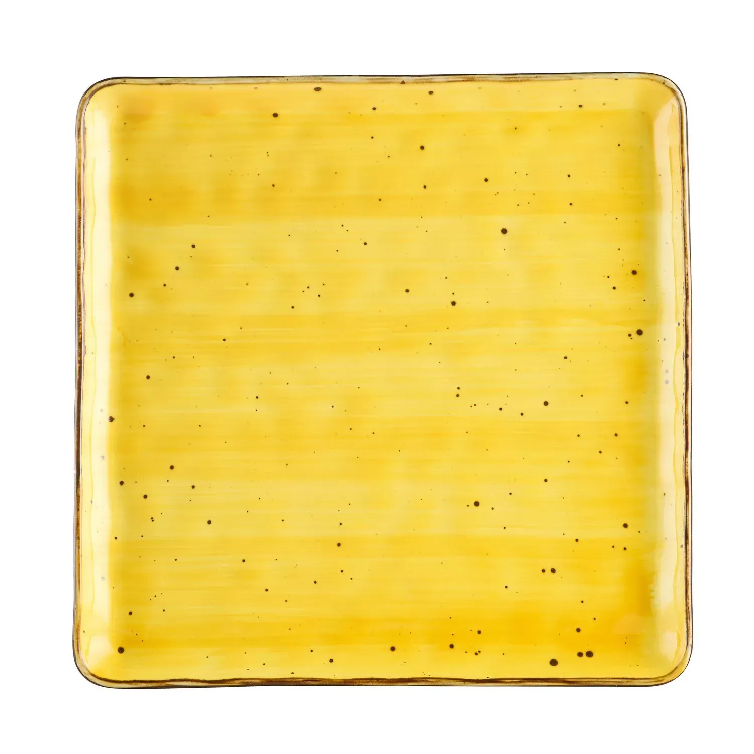 The reactive glaze finish in a vibrant Sunflower hue adds a touch of sophistication and warmth to your table setting, enhancing the visual appeal of any dish. This unique glaze technique ensures that each plate has its own distinct pattern, offering a personalized touch to your dining presentation. The Tucson Plate's robust construction and stylish design make it a reliable and attractive choice for any restaurant looking to impress its guests with both taste and aesthetics.