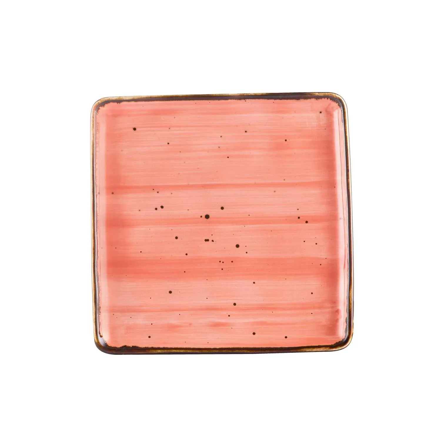 A practical choice for serving food in any establishment, the Tucson Coral Plate is designed to elevate your dining experience with its elegant and functional design. Measuring 8-1/4" by 8-1/4" with a height of 1/2", this square plate offers a modern aesthetic that complements any table setting. Crafted from high-quality porcelain, it features a stunning reactive glaze in a vibrant coral hue, adding a touch of sophistication and color to your presentation.
