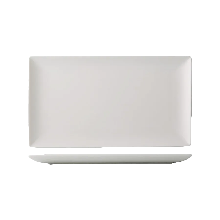 Introducing the CAC China VCT-12 Platter, a must-have for seamless food preparation in commercial restaurants. This rectangular, deep, and coupe platter is designed to enhance your culinary creations and impress your customers. Made of durable porcelain in a classic Bone White color, this platter is not only dishwasher safe but also oven and microwave safe, allowing for easy reheating and serving. Its glazed foot ensures stability on any surface, while its generous size of 10-3/4"L x 6"W x 3/4"H provides ample space for presenting appetizers, entrees, or desserts. Trust CAC China, a reputable vendor in the industry, to deliver quality and style to your restaurant. Upgrade your serving game with the CAC China VCT-12 Platter today.