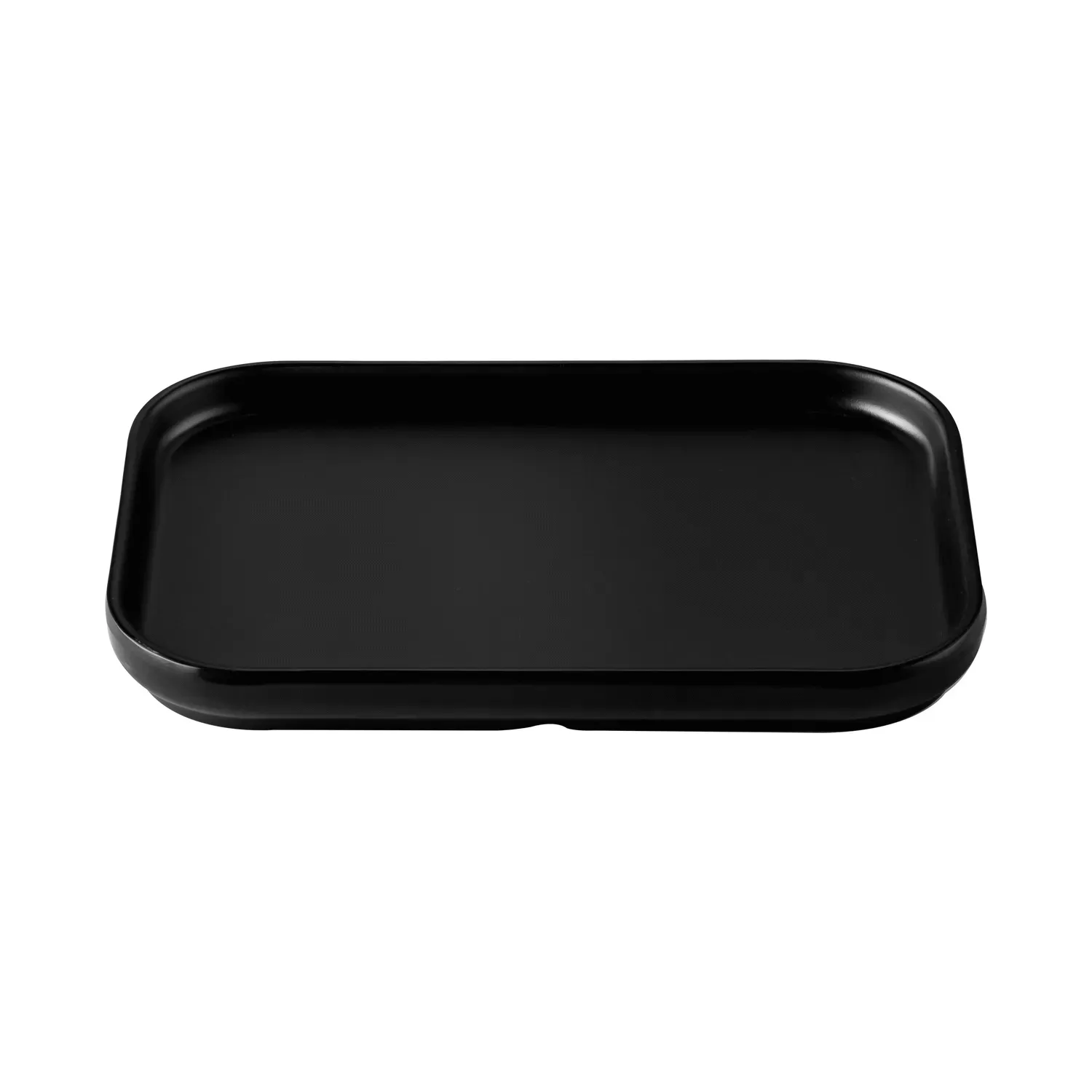 Elevate your dining experience with the Hudson Platter, a stunning addition to any table setting. Crafted with precision, this rectangular platter features straight sides and a sleek matte black finish that exudes modern elegance. Measuring 8 inches by 5-3/4 inches, it's the perfect size for serving appetizers, desserts, or a selection of gourmet delights. The Hudson Platter's contemporary design seamlessly complements both casual and formal occasions, making it a versatile choice for home chefs and professional caterers alike. Its matte black surface provides a striking backdrop that enhances the visual appeal of your culinary creations, allowing vibrant colors and textures to truly pop. Constructed from high-quality materials, this platter ensures long-lasting durability and is easy to clean, making it a practical yet stylish choice for everyday use or special gatherings. Whether you're hosting an intimate dinner party or a grand celebration, the Hudson Platter is designed to impress your guests with its refined aesthetic and functional excellence. Add a touch of sophistication to your serving collection and let your dishes shine with this exquisite piece that combines form and function in perfect harmony.