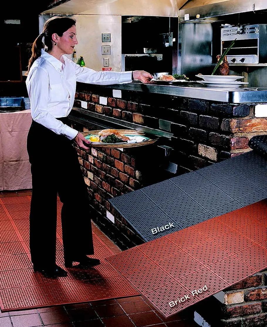Create seamless dining experiences with the Cactus Mat, 1640R-C364, Floor Mat, Anti-Fatigue. Designed for commercial restaurant use, this reversible safety runner is a game-changer. Its 3/8" thick, knob surface molded rubber provides exceptional anti-fatigue and anti-slip properties, ensuring the safety and comfort of your staff. The mat's excellent drainage feature keeps your bar, service areas, and non-grease kitchen/industrial areas clean and dry, reducing the risk of accidents. Lightweight and easy to handle, this mat is a breeze to install and maintain. Its durable construction guarantees long-lasting performance, even in high-traffic environments. With its sleek black design, it effortlessly blends into any restaurant decor. Elevate your dining experience and prioritize the well-being of your staff with this exceptional floor mat.