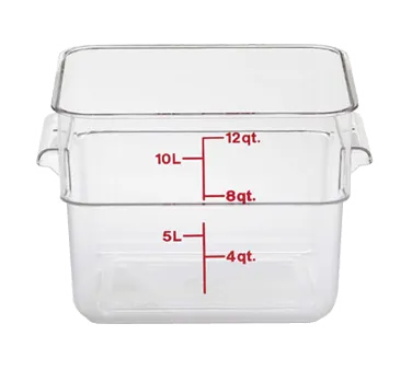 Bring precision to culinary tasks with the Cambro 12SFSCW135 Food/Beverage Storage Container. Designed for commercial restaurant use, this container is a must-have for any professional kitchen. With a capacity of 12 quarts, it provides ample space to store and organize ingredients, ensuring efficiency and convenience during food preparation. The clear Camwear square design allows for easy visibility of contents, saving time and effort when searching for specific items. Made by Cambro, a trusted name in food and beverage storage, this container is built to withstand the rigors of a busy kitchen. Whether you're storing dry goods, prepped ingredients, or leftovers, this food/beverage storage container is a reliable and practical choice. Upgrade your restaurant's storage system with the Cambro 12SFSCW135 and experience enhanced organization and efficiency in your kitchen.