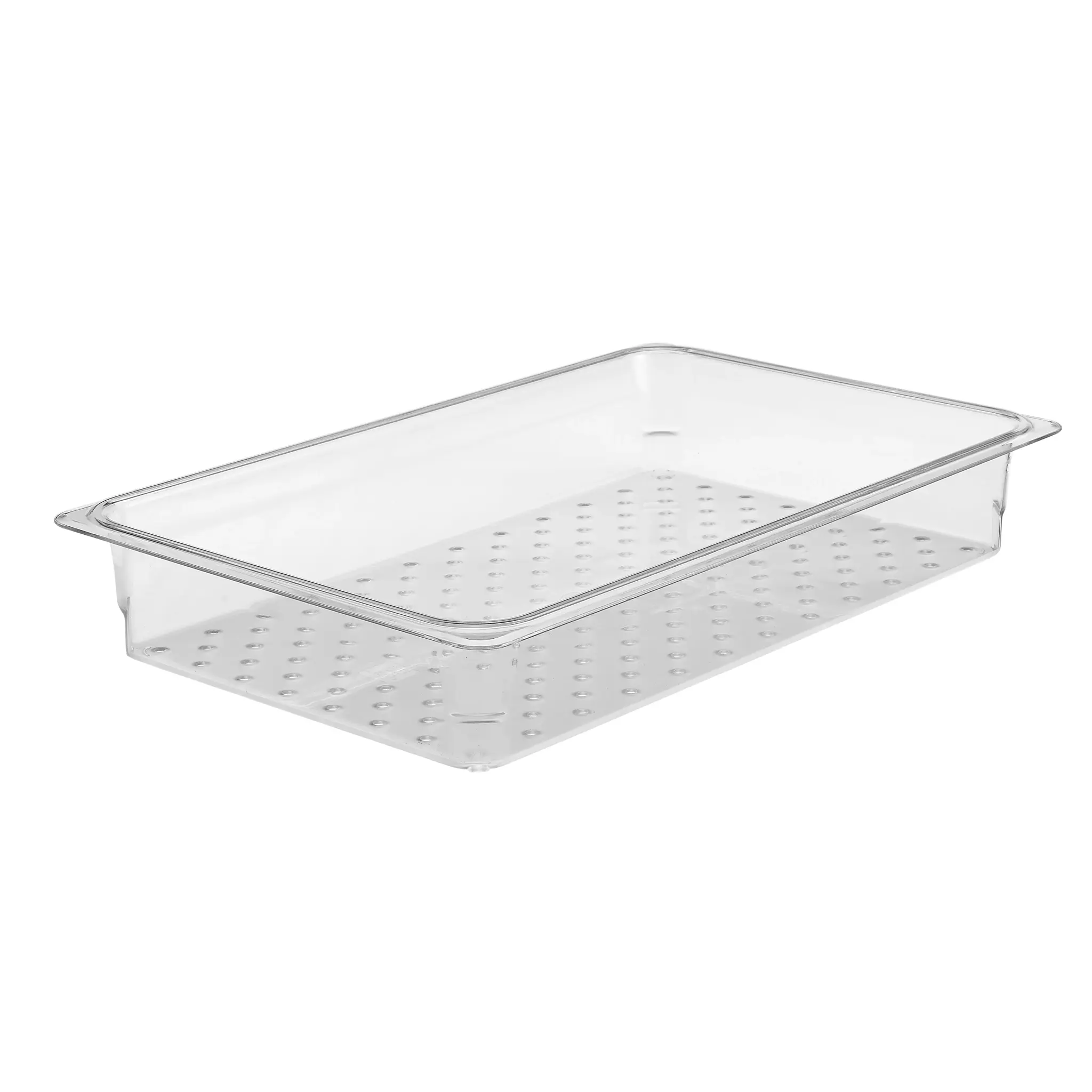 Set new standards in food service with the Cambro 13CLRCW135 Food/Beverage Storage Container. Designed for commercial restaurant use, this container is a game-changer in food storage. With its clear Camwear construction, you can easily identify the contents without opening the lid, saving time and reducing food waste. The 3" depth is perfect for storing a variety of ingredients, from fresh produce to prepped sauces. The food pan colander feature allows for easy draining of liquids, making it ideal for marinating meats or rinsing fruits and vegetables. Made by Cambro, a trusted name in food storage solutions, this container is durable, stackable, and easy to clean. Upgrade your restaurant's food storage system with the Cambro 13CLRCW135 Food/Beverage Storage Container and experience the difference in efficiency and organization.