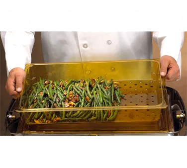 Introducing the Cambro 15CLRHP150 Food/Beverage Storage Container, a must-have for precision in every task in a commercial restaurant setting. With a full-size H-Pan Amber food pan colander, it offers convenience and efficiency in draining liquids from your ingredients. Made by Cambro, a trusted vendor in the food and beverage storage container category, this container is built to last and withstand the rigors of a commercial restaurant environment. Its durable construction and reliable performance make it an essential tool for any professional chef or restaurateur. Don't compromise on precision choose the Cambro 15CLRHP150 Food/Beverage Storage Container for all your commercial restaurant needs.