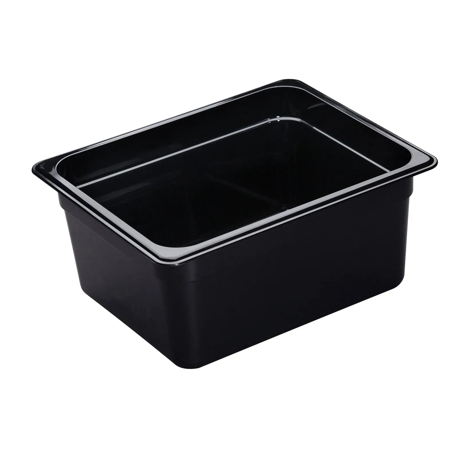 Set new standards in the kitchen with Cambro's 26HP110 Food/Beverage Storage Container. Designed for commercial restaurant use, this container is a game-changer in food storage. With a sleek black finish and a height of 6 inches, it offers ample space to store and organize your ingredients. Made by Cambro, a trusted name in the industry, this container is built to last and withstand the demands of a commercial restaurant environment. Its durable construction ensures that your food stays fresh and protected, while its stackable design saves valuable space in your kitchen. Whether you need to store prepped ingredients, leftovers, or bulk supplies, the Cambro 26HP110 Food/Beverage Storage Container is the perfect solution for any commercial kitchen.