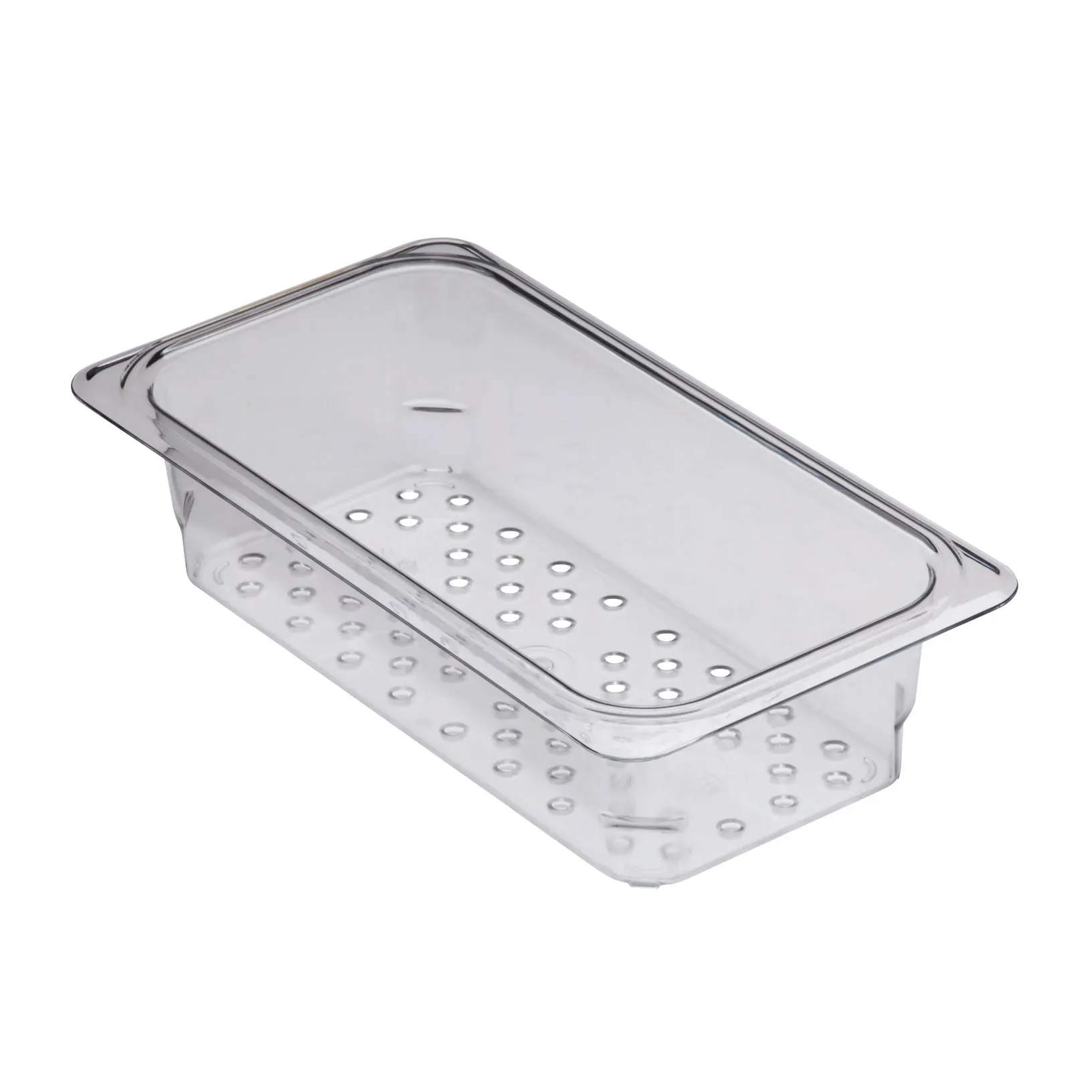 Stay competitive in culinary excellence with Cambro's 33CLRCW135 Food/Beverage Storage Container. Designed for commercial restaurant use, this clear Camwear container is a must-have for any professional kitchen. With a capacity of 1/3 X 3", it provides ample space for storing and organizing food items. The food pan colander feature allows for easy draining of liquids, making it perfect for prepping and storing ingredients. Made by Cambro, a trusted name in food and beverage storage containers, this product is built to last and withstand the demands of a busy kitchen. Whether you're storing fresh produce, marinating meats, or keeping sauces and dressings at the ready, the Cambro 33CLRCW135 Food/Beverage Storage Container is the ideal choice for maintaining the highest standards of food safety and organization.