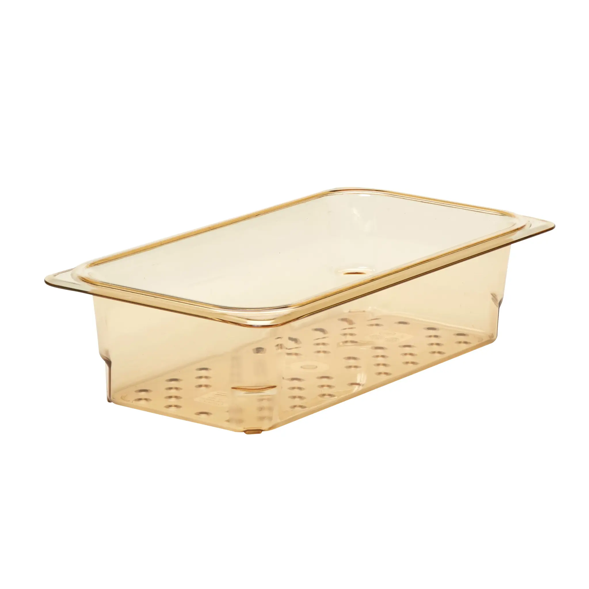 Maximize efficiency in the kitchen with Cambro's 33CLRHP150 Food/Beverage Storage Container. Designed specifically for commercial restaurant use, this container is a must-have for any busy kitchen. The 1/3 X 3" H-Pan Amber colander ensures easy draining and prevents food from becoming soggy. Made by Cambro, a trusted name in food and beverage storage containers, you can be confident in the quality and durability of this product. Whether you need to store prepped ingredients, leftovers, or ready-to-serve dishes, this container is up to the task. Streamline your kitchen operations and keep your ingredients fresh with Cambro's 33CLRHP150 Food/Beverage Storage Container.