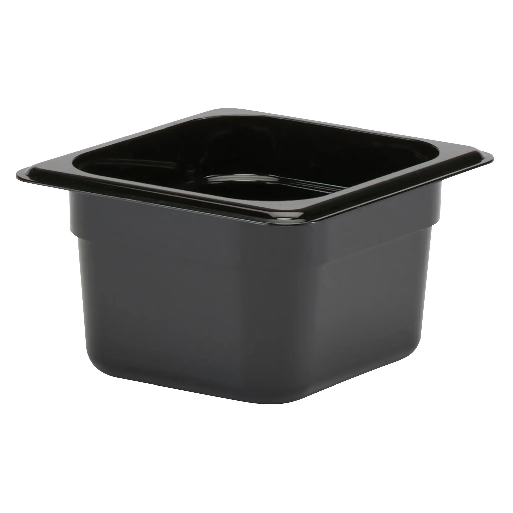 Bring precision to culinary tasks with the Cambro 64CW110 Food/Beverage Storage Container. Designed for commercial restaurant use, this container is a must-have for any professional kitchen. The 1/6 X 4" size is ideal for portion control and ensures efficient use of space. Made from durable Camwear Black material, this container is built to withstand the demands of a busy kitchen. Its stackable design allows for easy storage and maximizes space efficiency. Whether you're storing prepped ingredients or leftovers, the Cambro 64CW110 Food/Beverage Storage Container is the perfect solution for keeping your kitchen organized and efficient.