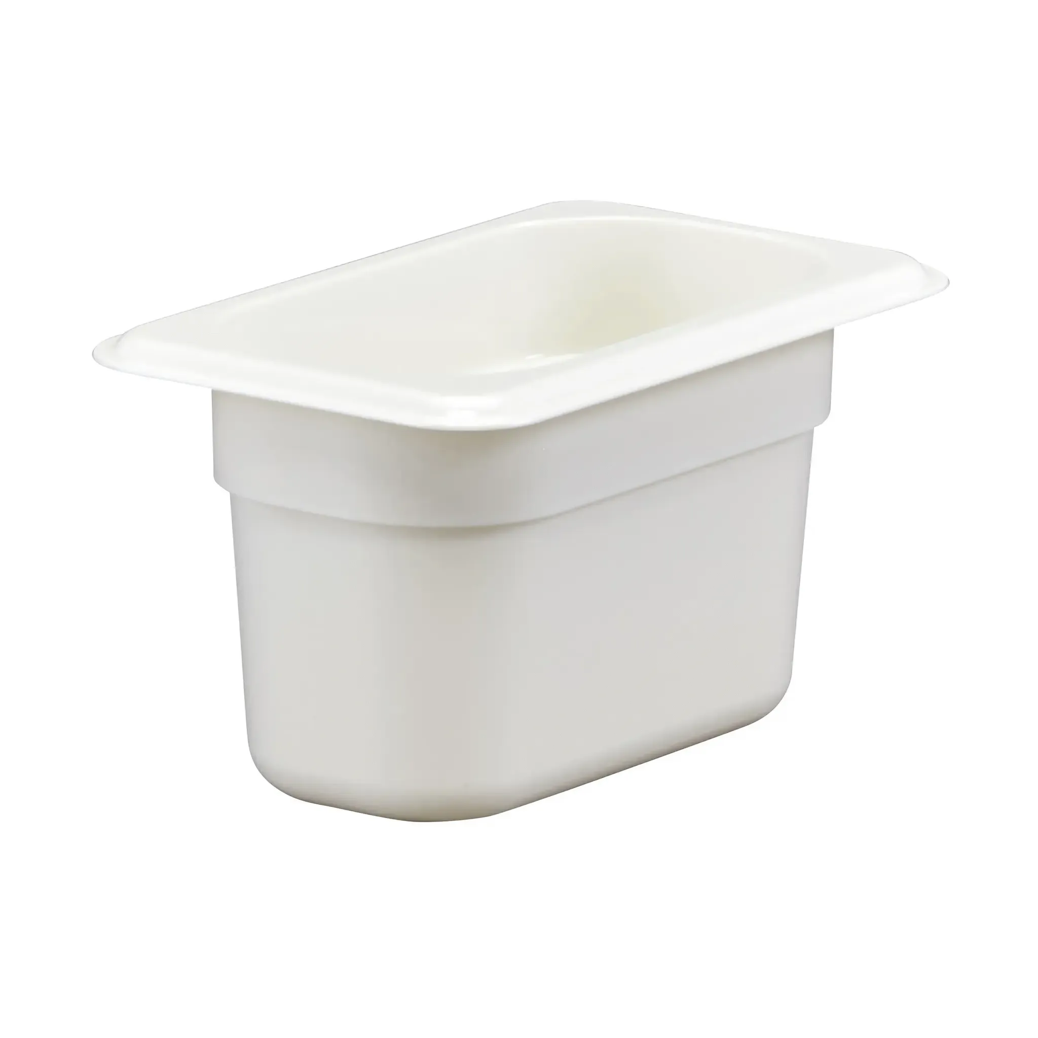 Stay competitive with versatile solutions. Introducing the Cambro 94CW148 Food/Beverage Storage Container, a must-have for any commercial restaurant. Made with durable Camwear material, it ensures long-lasting performance and withstands the rigors of a busy kitchen. The 1/9 size and 4" depth make it perfect for storing and organizing small ingredients, condiments, and toppings. Its white color allows for easy identification and inventory management. With its stackable design, it maximizes storage space, keeping your kitchen organized and efficient. The Cambro 94CW148 is easy to clean and dishwasher safe, saving you valuable time and effort. Invest in this food/beverage storage container and experience the convenience and reliability it brings to your commercial restaurant. Stay ahead of the competition with Cambro.