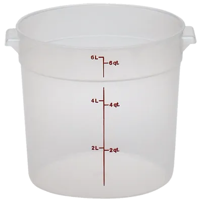 Introducing the Cambro RFS6PP190 Food/Beverage Storage Container, a must-have for commercial restaurants seeking precision in every task. This round 6-quart translucent container is designed to meet the rigorous demands of the food and beverage industry. The Cambro RFS6PP190 is made by Cambro, a trusted vendor in the food and beverage storage container category. Its durable construction ensures long-lasting performance, while the translucent design allows for easy identification of contents. This container is perfect for storing and organizing ingredients, prepped food, and beverages, helping to streamline operations and maximize efficiency. Whether you need to store fresh produce, marinated meats, or leftover soups, the Cambro RFS6PP190 Food/Beverage Storage Container is the ideal solution for commercial restaurant use. Upgrade your kitchen storage with this reliable and versatile container.
