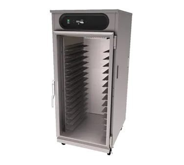 Introducing the Carter-Hoffmann HL7-14 Heated Cabinet, Mobile. Improve food transport for efficiency with this top-of-the-line holding cabinet. Designed specifically for commercial restaurant use, this cabinet offers a spacious one compartment with a 3/4 height, allowing for easy access and organization. With a capacity of up to 28 12" x 20" or 14 18" x 26" pans, you can store and transport large quantities of food with ease. The universal pan slides ensure flexibility and convenience. The solid field reversible door provides durability and accessibility. The mechanical controls allow for precise temperature regulation, while the top-mount forced air heating system ensures even heat distribution. Made with stainless steel construction, this cabinet is built to withstand the demands of a busy kitchen. Equipped with 5" swivel casters, including 2 with brakes, this mobile cabinet is easy to maneuver and secure in place. Trust Carter-Hoffmann for reliable, high-quality equipment that enhances your restaurant's efficiency and productivity.
