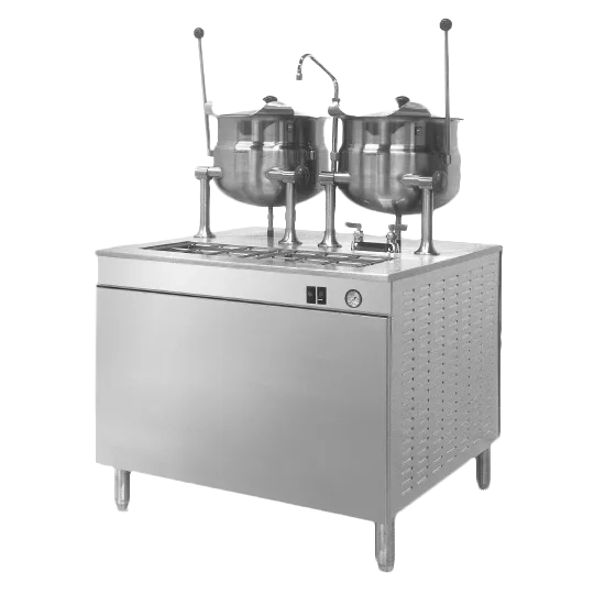 Experience the difference daily with the Cleveland 24DMK6 Kettle Cabinet Assembly. This direct-steam unit is designed for commercial restaurant use, offering exceptional performance and durability. The 6-gallon 2/3 steam jacketed kettle features a lift-off cover and manual tilt for easy operation. The steam control kit, including a needle-type steam control valve, steam trap, condensate strainer, check valve, nipple, and fittings, is factory assembled and mounted on the kettle for convenience. With a 50 psi rating and stainless steel construction, this kettle cabinet assembly is built to withstand the demands of a busy kitchen. The adjustable flanged feet ensure stability and easy leveling. Plus, the double pantry faucet provides added versatility. Whether you're simmering soups, boiling pasta, or steaming vegetables, the Cleveland 24DMK6 Kettle Cabinet Assembly is the perfect addition to your commercial restaurant kitchen.