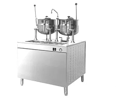 Upgrade kitchen service with the Cleveland 36EMK6624 Kettle Cabinet Assembly. This electric unit features a 36" W cabinet base with two 6-gallon kettles, perfect for high-volume cooking in a commercial restaurant setting. The standard height cabinet is equipped with a 24 KW electric boiler, ensuring efficient and consistent heating. The lift-off cover allows for easy access and maintenance, while the double pantry faucet, sink, and drain provide convenience for food preparation and cleanup. The splash guard keeps the surrounding area clean and safe. With the factory-installed steam control kit(s), you can easily regulate the cooking process to achieve the desired results. Designed by Cleveland, a trusted vendor in the industry, this Kettle Cabinet Assembly is a reliable and durable addition to any professional kitchen. Upgrade your restaurant's efficiency and productivity with this top-of-the-line electric kettle cabinet assembly.