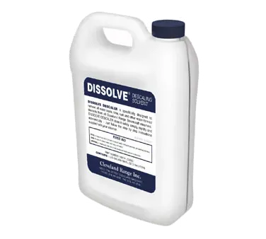 Elevate dining experience daily with Cleveland's DISSOLVE Descaler/Delimer. This powerful solution is designed to keep your commercial restaurant running smoothly. With its quart markings and (6) one-gallon containers, this descaling solution is perfect for maintaining your equipment's performance.