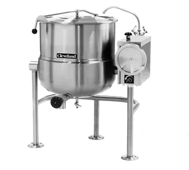 Set new standards in your kitchen with the Cleveland KDL150T Kettle. Designed for commercial restaurant use, this direct steam, tilting kettle is a game-changer. With a generous 150-gallon capacity and a 2/3 steam jacket design, it can handle large quantities of food with ease. The kettle is mounted on an open quad-leg base, providing stability and durability. Its stainless steel exterior finish not only adds a sleek look but also ensures long-lasting performance. The flanged feet and steam control valve allow for precise temperature control, while the 35 psi rating guarantees efficient cooking. The optional cover and draw-off further enhance its versatility. Upgrade your restaurant's cooking capabilities with the Cleveland KDL150T Kettle.