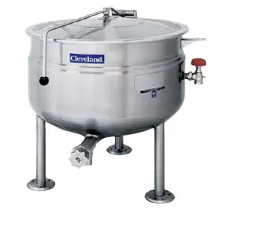 Transform kitchen service with the Cleveland KDL40SH Steam Jacketed Kettle. Designed for commercial restaurant use, this stationary kettle is a game-changer in the kitchen. With a 40-gallon capacity and a full steam jacket design, it provides efficient and even heating for large quantities of food. The stainless steel construction ensures durability and easy cleaning, while the solid state temperature controls allow for precise cooking. The kettle also features a faucet mounting bracket, a 2" tangent draw-off & drain strainer, and a spring assist cover for convenience and safety. With a 50 psi rating and open tri-leg base, this kettle is built to handle the demands of a busy restaurant kitchen. Upgrade your kitchen equipment with the Cleveland KDL40SH and experience improved productivity and quality in your food preparation.