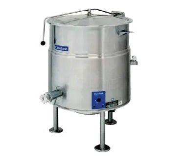 Stay competitive in culinary excellence with the Cleveland KEL30 Electric Stationary Kettle. Designed for commercial restaurant use, this 30-gallon capacity kettle is a game-changer in the kitchen. Its 2/3 steam jacket design ensures even heat distribution, allowing for precise cooking and consistent results. The solid state water level control and 50 psi rating guarantee optimal performance and safety. With a spring-assisted cover and a 2" tangent draw-off, this kettle offers convenience and efficiency. Made of durable 304 stainless steel construction, it is built to withstand the demands of a busy kitchen. The open tri-leg base and flanged feet provide stability and easy cleaning. The faucet bracket and strainer add versatility and functionality. Whether you're simmering soups, boiling pasta, or steaming vegetables, the Cleveland KEL30 Electric Stationary Kettle is the perfect addition to your commercial kitchen.